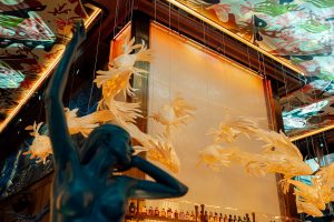 Dit meesterwerk is 7 meter hoog en 5 meter breed. Het heeft aan drie zijden een waterval en geeft de bar een fascinerende en elegante sfeer.
