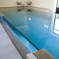 In a private home in Ede, the residents are enjoying their new swimming pool and jacuzzi. Underwater Windows supplied three large overflow windows (approx. 2500 mm, 3200 mm and 8700 mm wide) with Chemical Bonding technology, perfectly placed in a stainless steel pool.