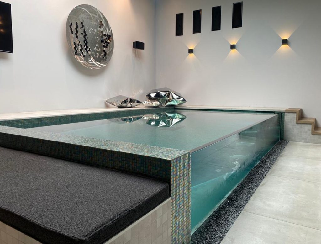 For a luxury villa in Valkenswaard, we supplied a custom-made Open Top Pool Window made of Plexiglas®, integrated into the pool for an exclusive look and unique swimming experience.